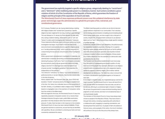 Statement of Shincheonji Church of Jesus